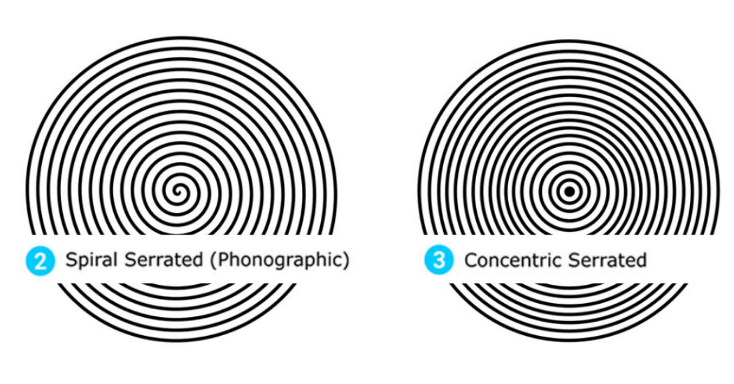 螺旋鋸齒(音像)飾面比同心鋸齒飾面更難密封。密封墊材料的完全流動(dòng)必須以留聲光飾面到達(dá)“谷”表面的底部,以避免從螺旋的一端到外部的螺旋泄漏路徑。