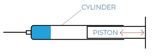 向后拉注射器的活塞會(huì)產(chǎn)生吸力,將液體拉入氣缸,同時(shí)向前推動(dòng)活塞將液體通過注射器的推頭排出(圖 1)。
