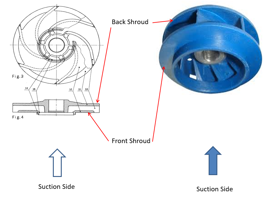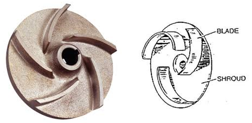 第一個,可以說是最堅固的設(shè)計是封閉式葉輪。在這種設(shè)計中,液體沿著由葉片形成的通道沿路徑向下流動,并通過兩個護罩在頂部和底部(或根據(jù)軸方向的前后)“封閉”。下面的兩張圖片說明了這種設(shè)計。