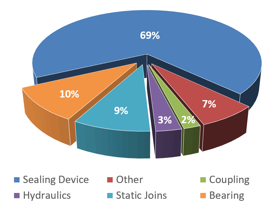 泵出現故障的原因有很多,但如下圖所示,超過三分之二的故障與密封裝置問題有關。隨著節(jié)約用水和減少需要處理的廢液數量的運動,該行業(yè)越來越依賴機械密封。隨著安裝人口的增長,直接由機械密封引起的泵故障的百分比也在增加。